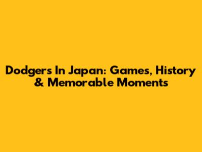 Dodgers In Japan: Games, History & Memorable Moments