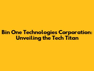 Hey guys! Let's dive into the fascinating world of Bin One Technologies Corporation, a name that might not be on everyone's radar, but trust me, they're making some serious waves in the tech industry. In this article, we're going to break down everything you need to know about this company – from its core business to its potential impact. Get ready to have your tech knowledge boosted, because we're about to embark on a journey through the operations, innovations, and influence of Bin One Technologies Corporation. This is going to be fun, so buckle up!