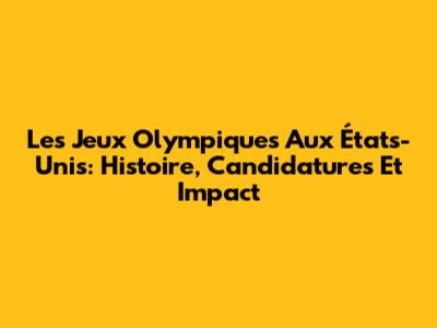 Les Jeux Olympiques Aux États-Unis: Histoire, Candidatures Et Impact