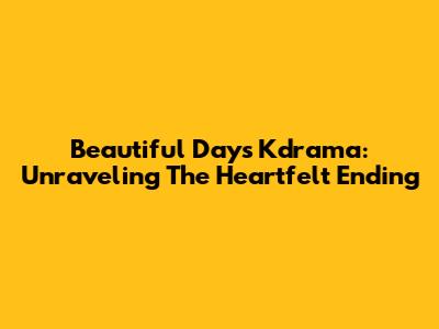 Beautiful Days Kdrama: Unraveling The Heartfelt Ending