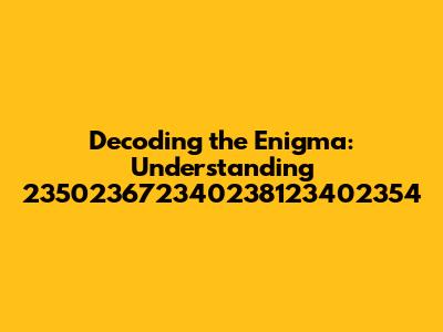 Alright guys, let's dive into this intriguing sequence: '235023672340238123402354'. At first glance, it might seem like a random jumble of numbers, but trust me, there's always a story, a reason, or at least something interesting to explore behind such a unique identifier. In this article, we're going to break down what this number could potentially represent, the different contexts in which such a sequence might appear, and why understanding these seemingly arbitrary codes is more important than you might think. We’ll put on our detective hats and try to unravel this numerical mystery together! Remember, in the world of data and information, everything has a purpose, even if it’s not immediately obvious.