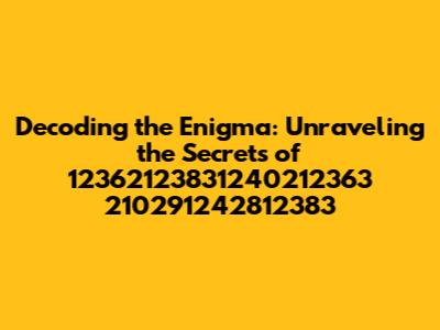 Hey there, data detectives! Ever stumbled upon a sequence of numbers that seems utterly random, like a cosmic riddle waiting to be solved? Well, buckle up, because we're about to dive deep into the enigmatic world of 12362123831240212363 210291242812383. This isn't just a string of digits; it's a puzzle, a potential key, and maybe, just maybe, a portal to something fascinating. In this article, we'll explore what this number sequence could represent, how we might decipher it, and what hidden meanings it could unlock. Get ready to flex those brain muscles, because we're about to embark on a thrilling quest for answers!