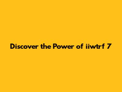 Discover The Power Of Iiwtrf 7