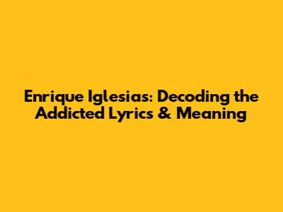 Enrique Iglesias: Decoding The 'Addicted' Lyrics & Meaning