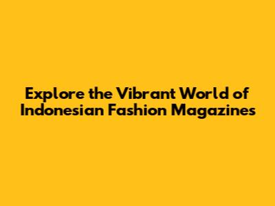Hey fashion enthusiasts! Ready to dive into the dazzling world of Indonesian fashion? We're talking about exploring the best Indonesia fashion magazines, the style bibles that showcase the latest trends, the most stylish personalities, and the unique flair of Indonesian designers. In this guide, we'll journey through the must-read publications that capture the essence of Indonesian style, from high-end couture to street-style cool. Get ready to discover the magazines that inspire, inform, and ignite your passion for fashion.