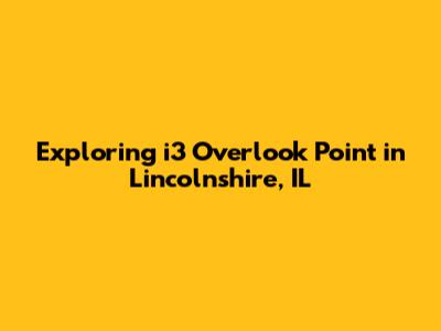 Hey guys, let's dive into something pretty cool: i3 Overlook Point in Lincolnshire, IL! This place is a gem, and whether you're a local or just passing through, it's worth checking out. We're going to explore what makes this spot special, from its location to the kinds of activities you can enjoy. We'll chat about its features, what you can see and do there, and even some tips to make your visit awesome. Get ready to discover why i3 Overlook Point is a must-visit destination. I'll make sure it's super easy to understand and maybe even give you some ideas for your next outing.