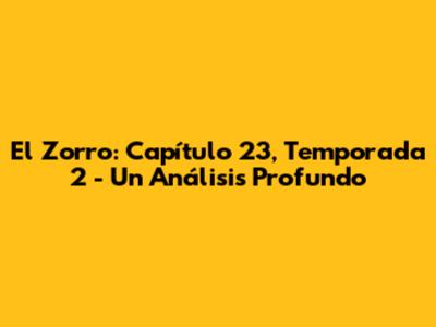 El Zorro: Capítulo 23, Temporada 2 - Un Análisis Profundo