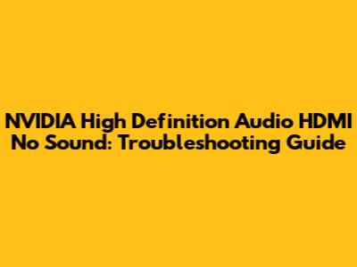 Experiencing NVIDIA High Definition Audio HDMI no sound issues can be incredibly frustrating, especially when you're trying to enjoy your favorite movies, games, or music. Guys, if you've plugged in your HDMI cable, expecting crystal-clear audio to blast through your speakers or headphones, only to be met with silence, don't worry! You're not alone. Many users encounter this problem, but the good news is that it's often fixable with a bit of troubleshooting. This comprehensive guide will walk you through various steps to diagnose and resolve the issue, ensuring you get your audio back up and running in no time. From checking your default audio devices to updating drivers and tweaking advanced settings, we'll cover all the bases to help you reclaim your auditory experience. Let's dive in and get that sound working again!