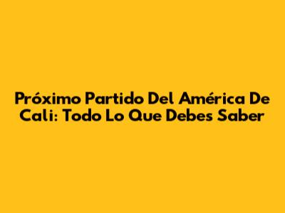 Próximo Partido Del América De Cali: Todo Lo Que Debes Saber