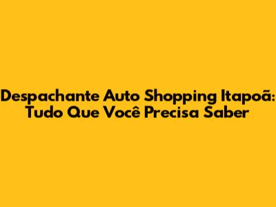 Despachante Auto Shopping Itapoã: Tudo Que Você Precisa Saber