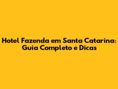 Melhores Hotel Fazendas em Santa Catarina (Best Farm Hotels in Santa Catarina)