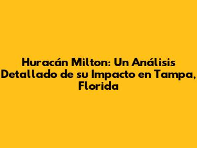 El Huracán Milton fue un evento meteorológico significativo que afectó a Tampa, Florida, y sus alrededores. Para entender completamente su impacto, es crucial conocer su trayectoria, intensidad y las características que lo definieron. No tenemos una fecha específica para el hipotético huracán Milton, así que usaremos la información disponible sobre huracanes en general para ilustrar los efectos en Tampa.