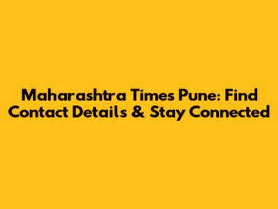 Maharashtra Times Pune: Find Contact Details & Stay Connected
