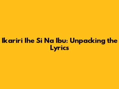 Hey everyone, and welcome back to the channel! Today, guys, we're diving deep into a song that's been making waves, "Ikariri Ihe Si Na Ibu." If you've been listening to this track, you might have found yourself humming along to the melody, maybe even feeling the emotion in the vocals, but wondering, "What is this song really about?" Well, you've come to the right place! We're going to break down the lyrics, explore the themes, and get to the heart of what makes "Ikariri Ihe Si Na Ibu" so compelling. This isn't just about deciphering words; it's about understanding the message, the cultural context, and the universal feelings it touches upon. So, grab your headphones, settle in, and let's get started on this lyrical journey.