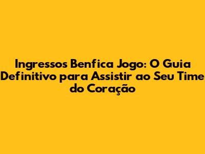 Onde Comprar Seus Ingressos Benfica Jogo: As Opções Mais Seguras