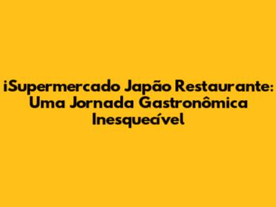 Ao visitar o iSupermercado Japão Restaurante, você não apenas desfrutará de uma refeição deliciosa, mas também mergulhará em um mundo de sabores, aromas e sensações que celebram a riqueza da cultura japonesa. É uma oportunidade de experimentar o melhor da culinária japonesa, com ingredientes de alta qualidade, pratos autênticos e um ambiente que transporta você diretamente para o Japão. Então, da próxima vez que você estiver planejando um jantar especial, uma refeição casual ou simplesmente buscando uma experiência gastronômica inesquecível, não hesite em visitar o iSupermercado Japão Restaurante. Prepare-se para uma jornada culinária que vai despertar seus sentidos e te transportar para o fascinante mundo da culinária japonesa. A experiência é garantida!