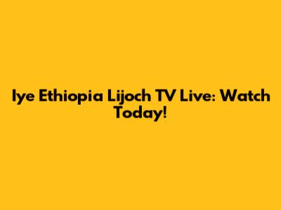 Iye Ethiopia Lijoch TV Live: Watch Today!