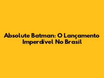 Absolute Batman: O Lançamento Imperdível No Brasil