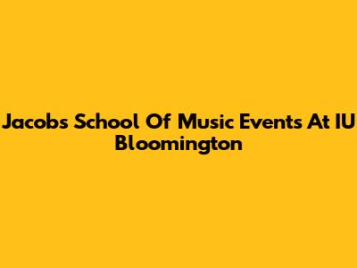 Jacobs School Of Music Events At IU Bloomington