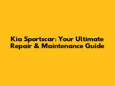 Kia Sportscar: Your Ultimate Repair & Maintenance Guide