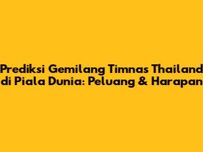 Prediksi dan Harapan: Mungkinkah Thailand Lolos ke Piala Dunia?