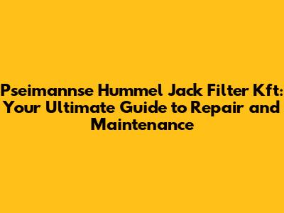 Repairing Your Pseimannse Hummel Jack Filter Kft