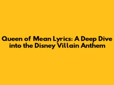 Queen Of Mean Lyrics: A Deep Dive Into The Disney Villain Anthem