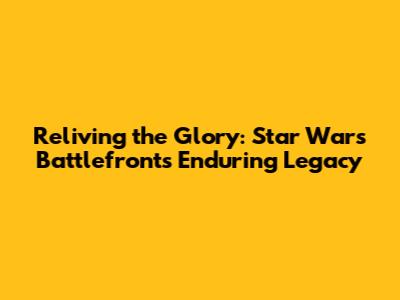 Reliving The Glory: Star Wars Battlefront's Enduring Legacy