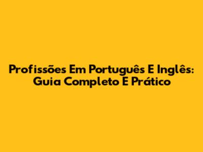 Profissões Em Português E Inglês: Guia Completo E Prático