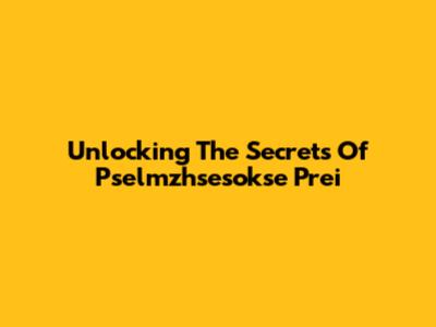 Unlocking The Secrets Of Pselmzhsesokse Prei