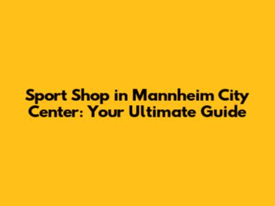 Sport Shop In Mannheim City Center: Your Ultimate Guide