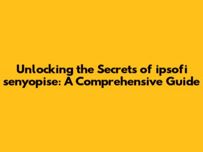 Unlocking The Secrets Of Ipsofi Senyopise: A Comprehensive Guide